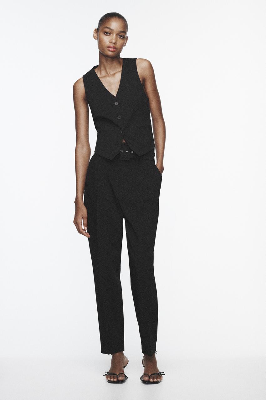 Hose Mit Bezogenem Gurtel Schwarz Zara Deutschland Germany